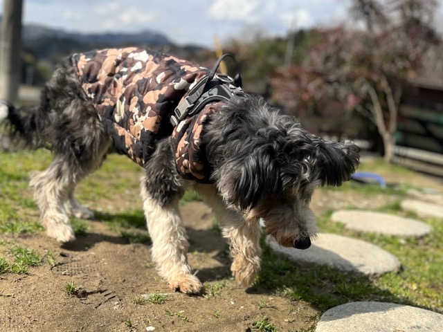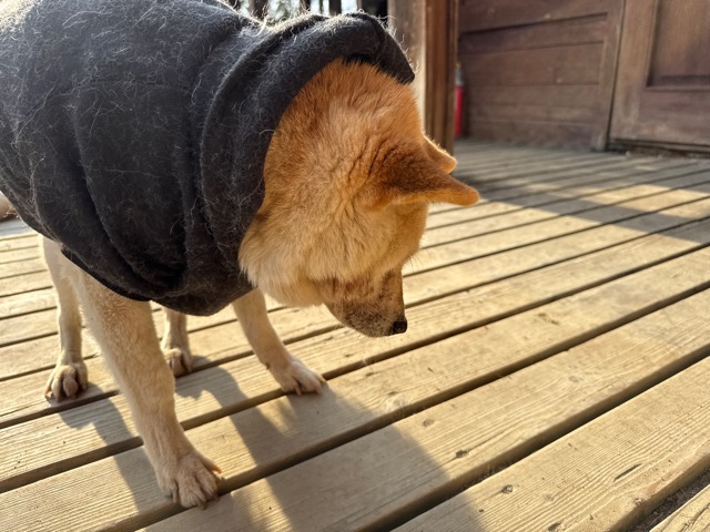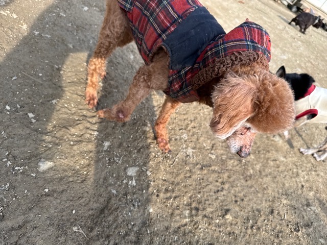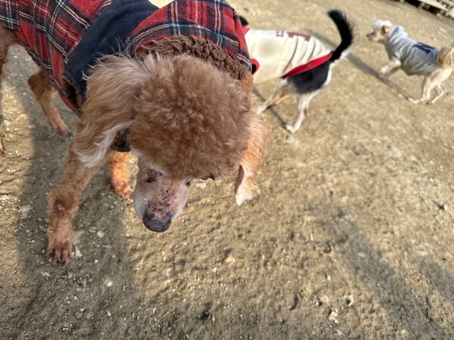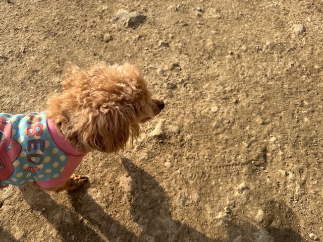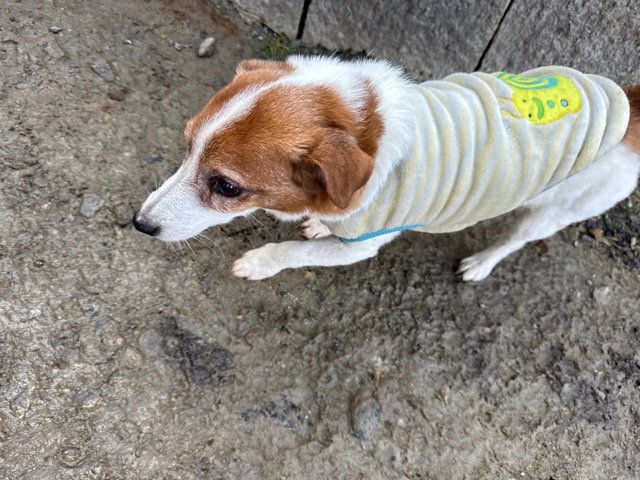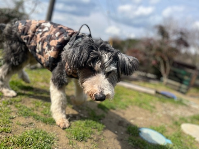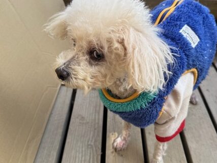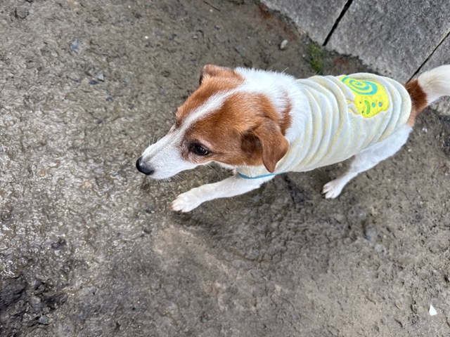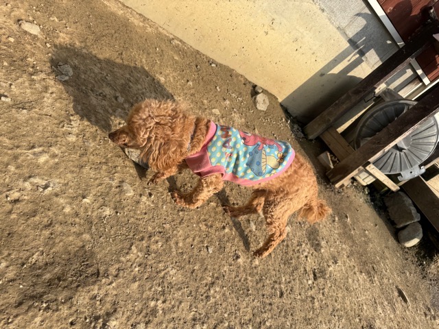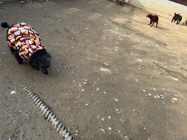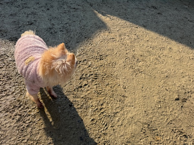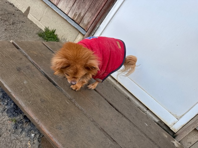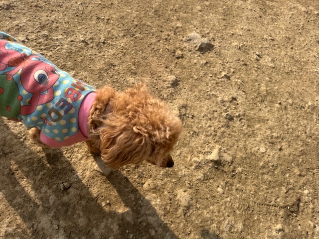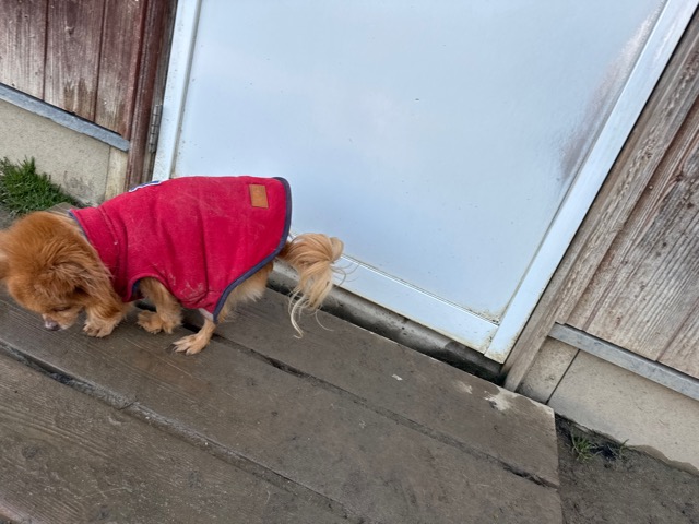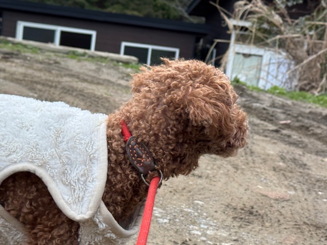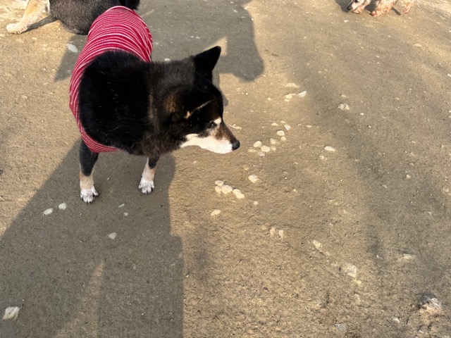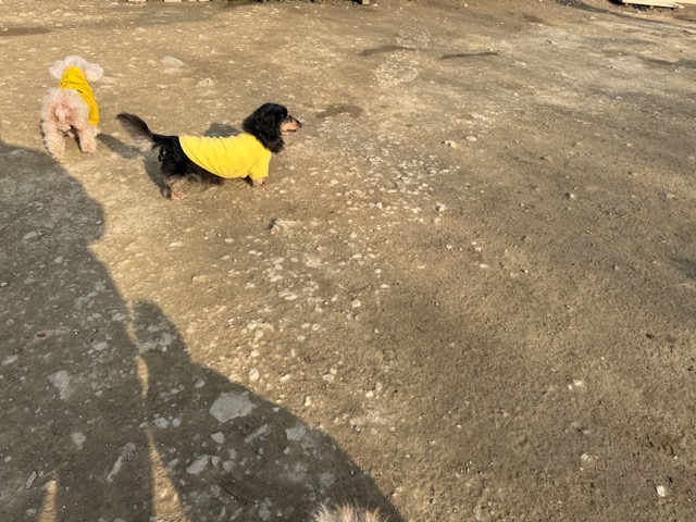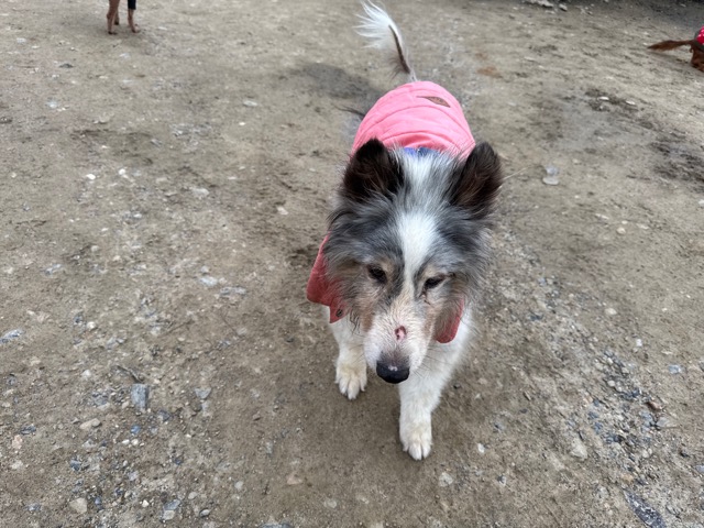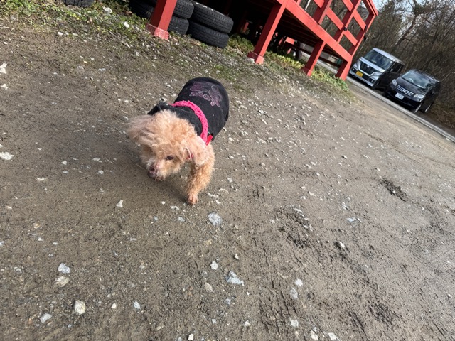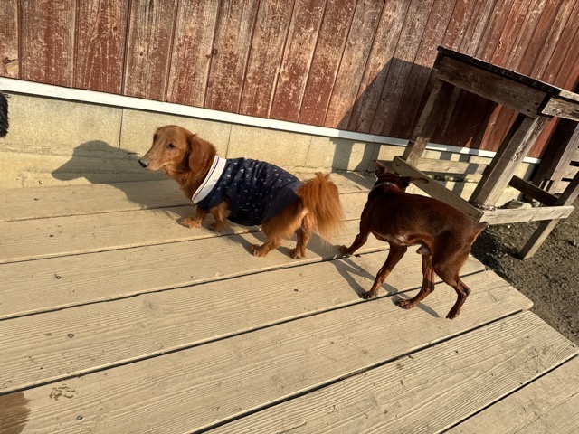 今日は元保護犬ちゃんが初保育園、怖がりさん。