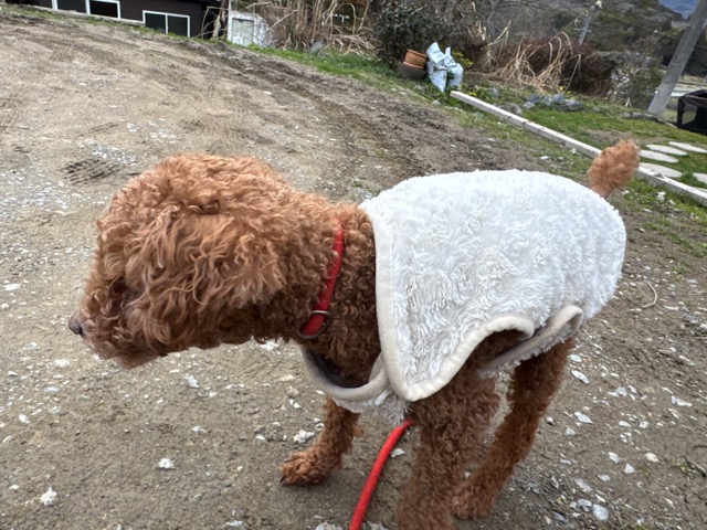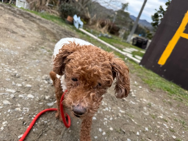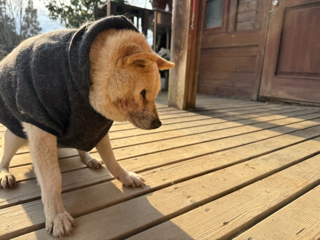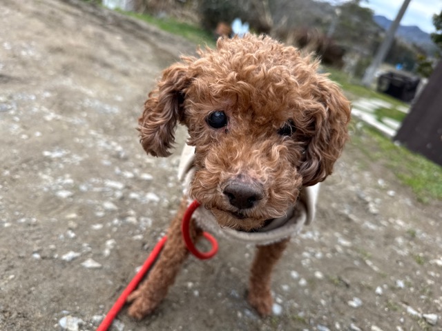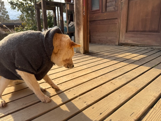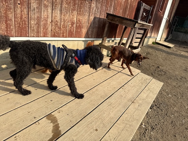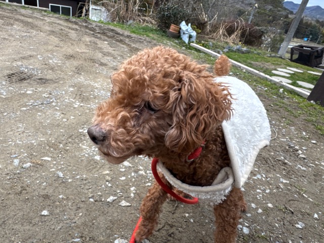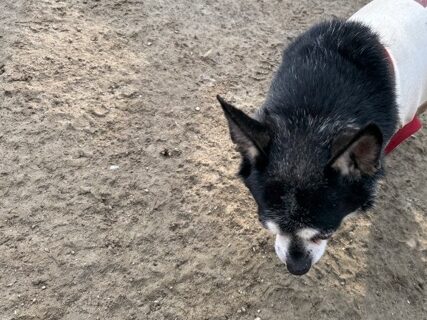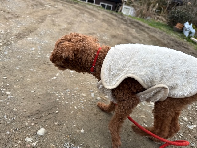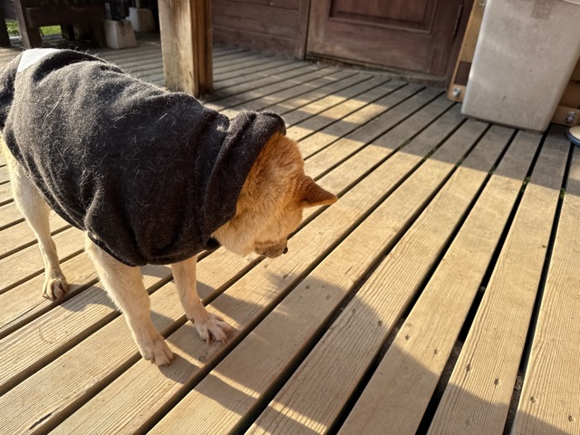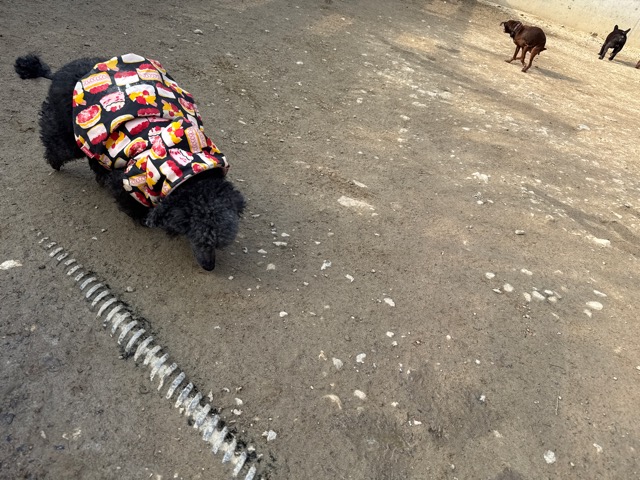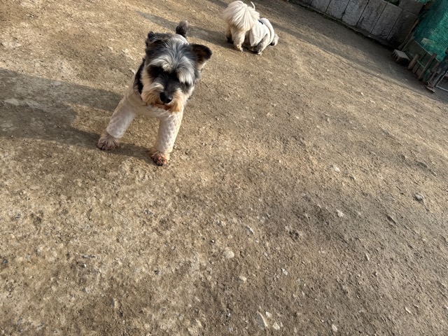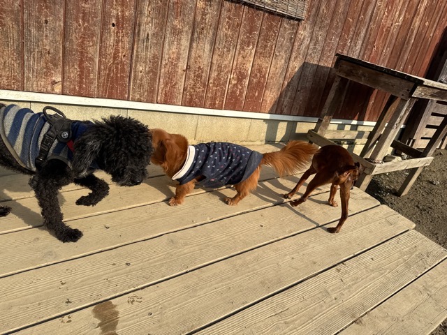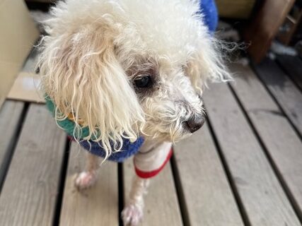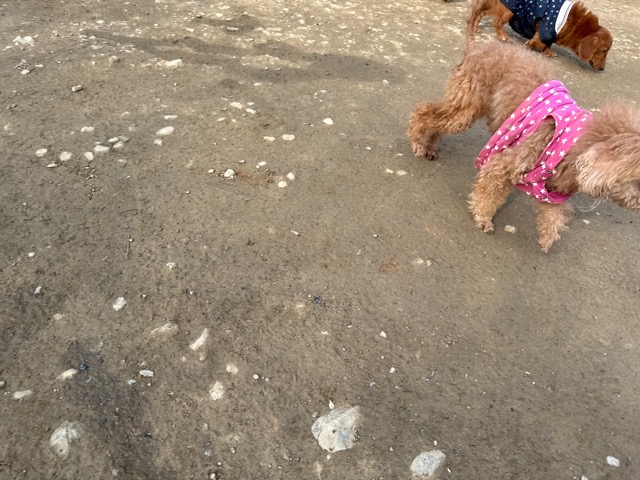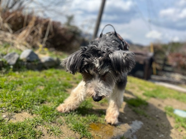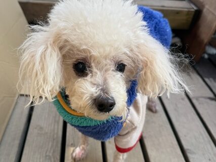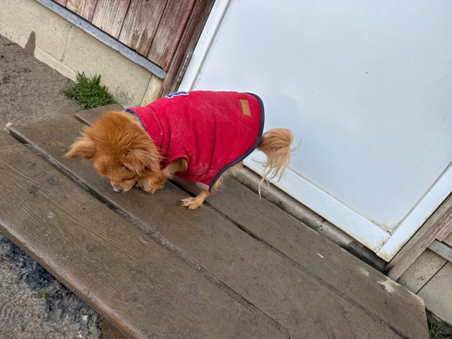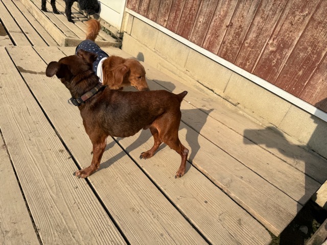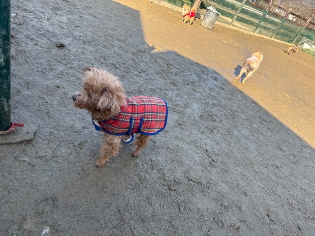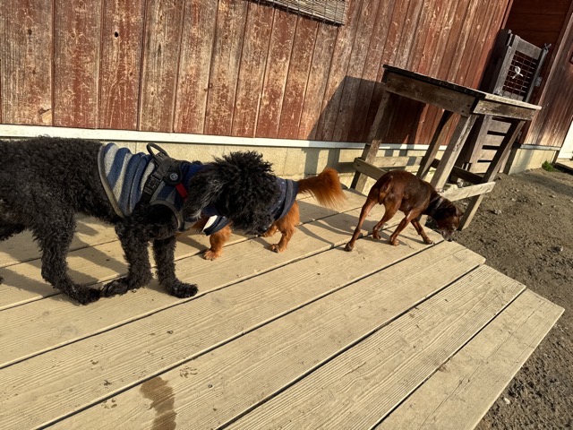 今日は元保護犬ちゃんが初保育園、怖がりさん。