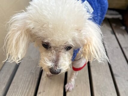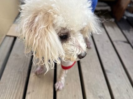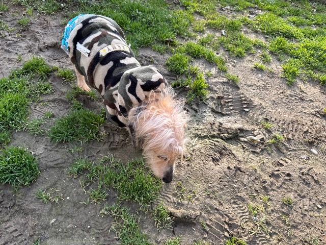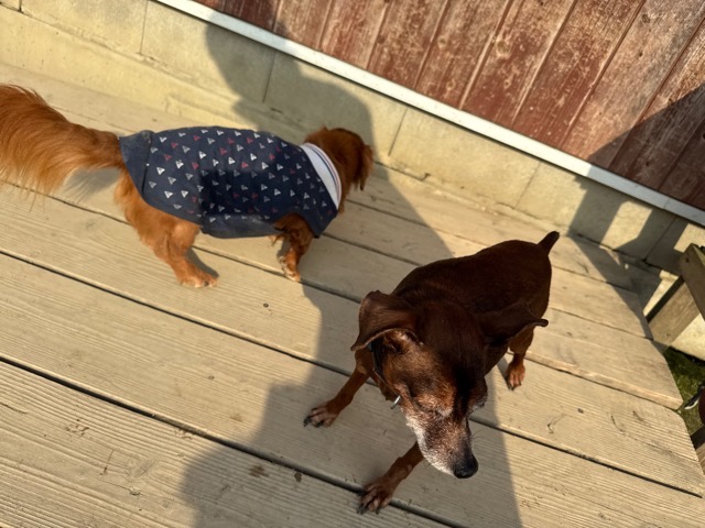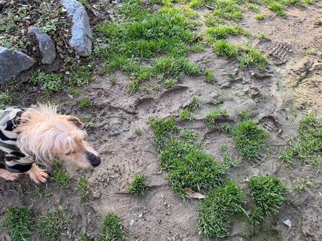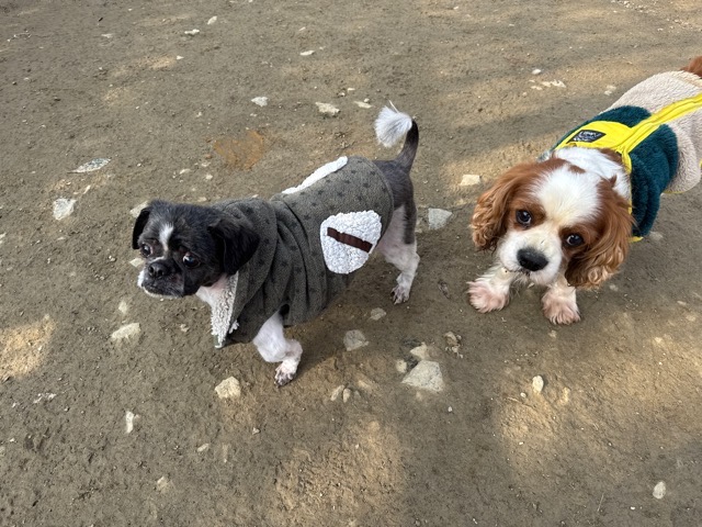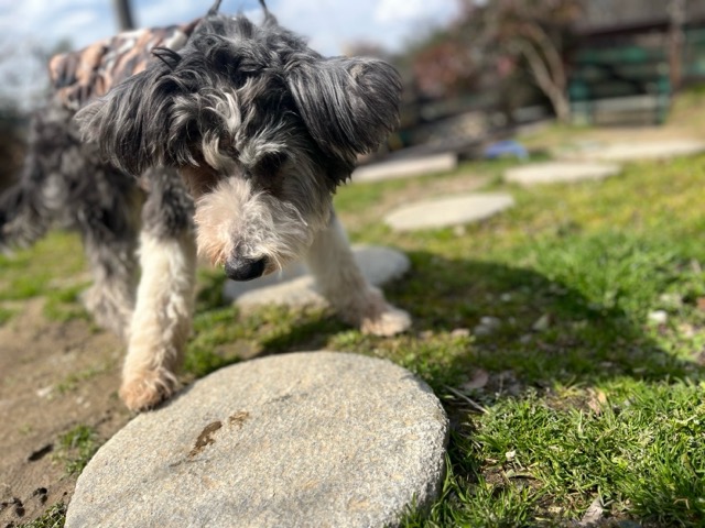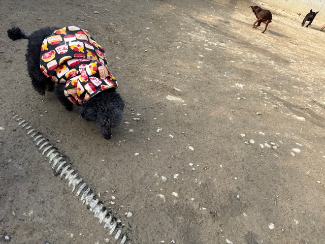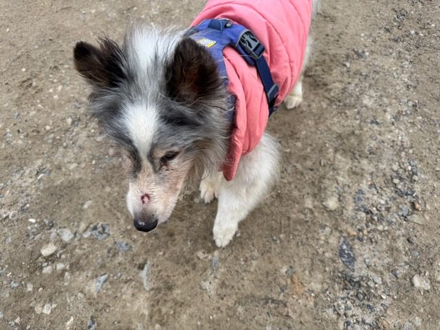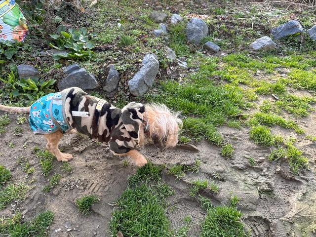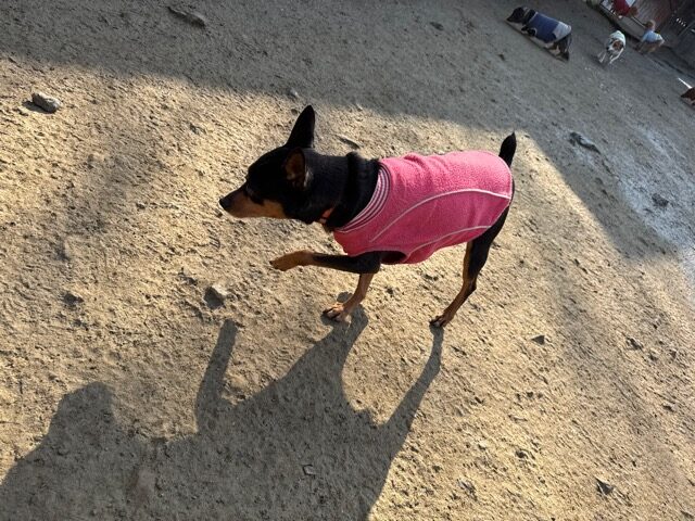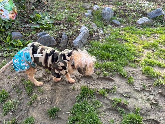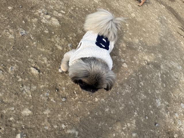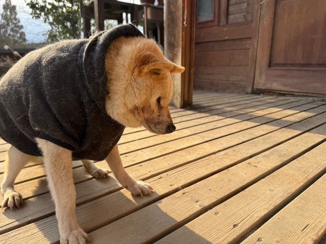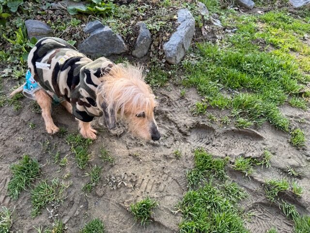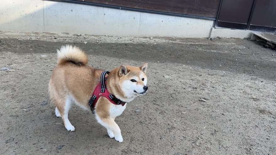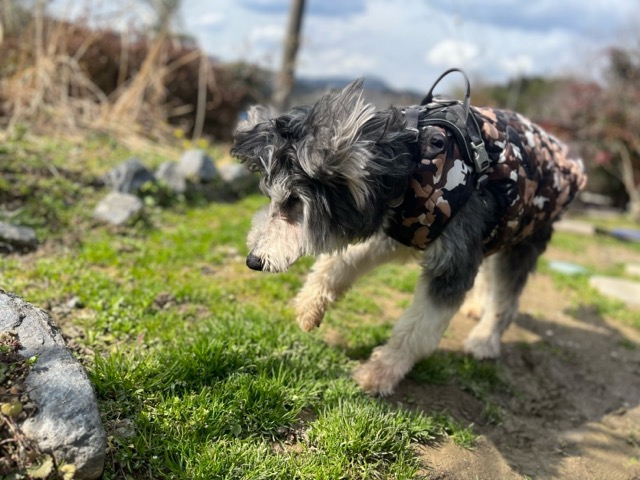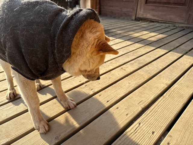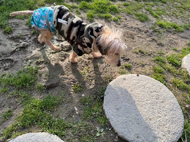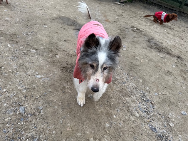 今日は元保護犬ちゃんが初保育園、怖がりさん。