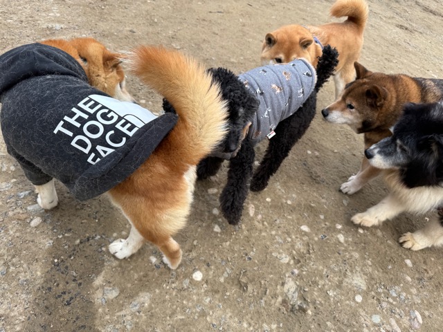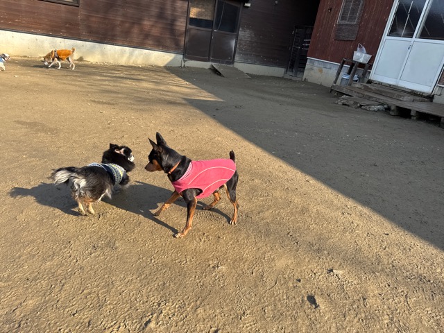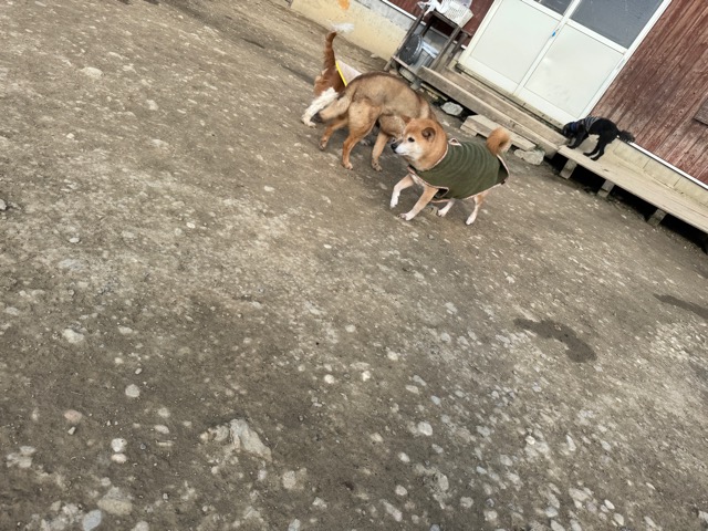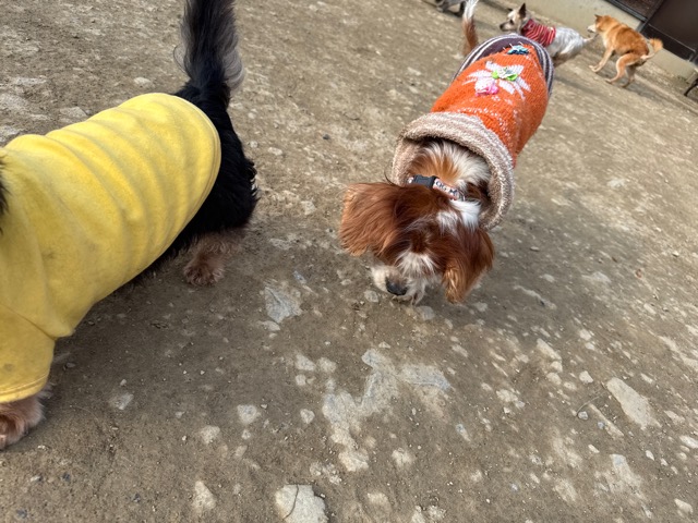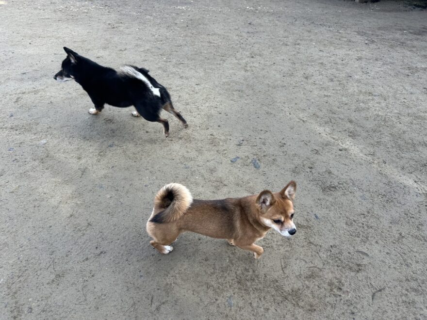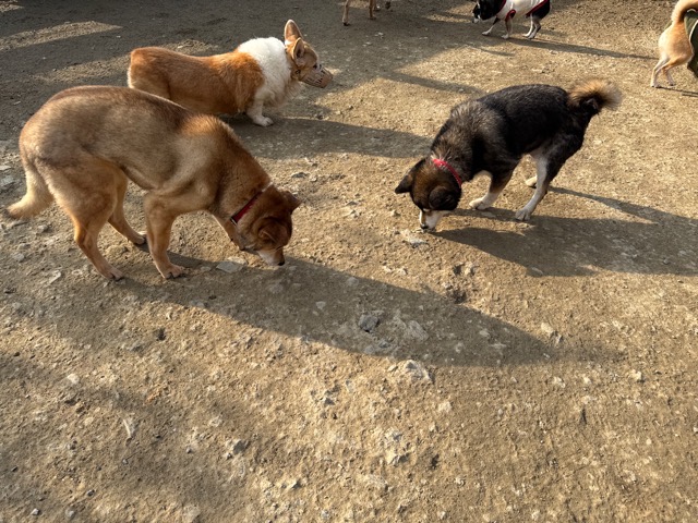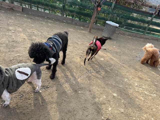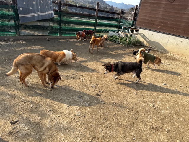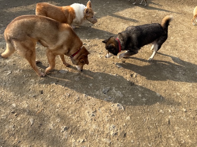 あんの保護犬ちゃん達と一緒にラン、私は距離をとり犬達だけでコミニケーションを取らせてあげると