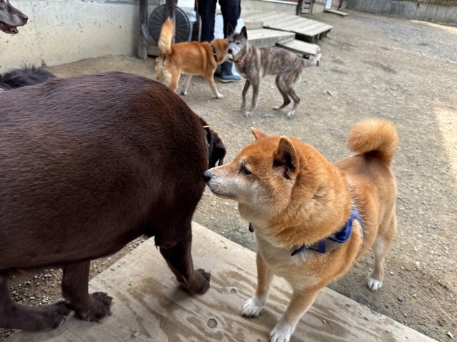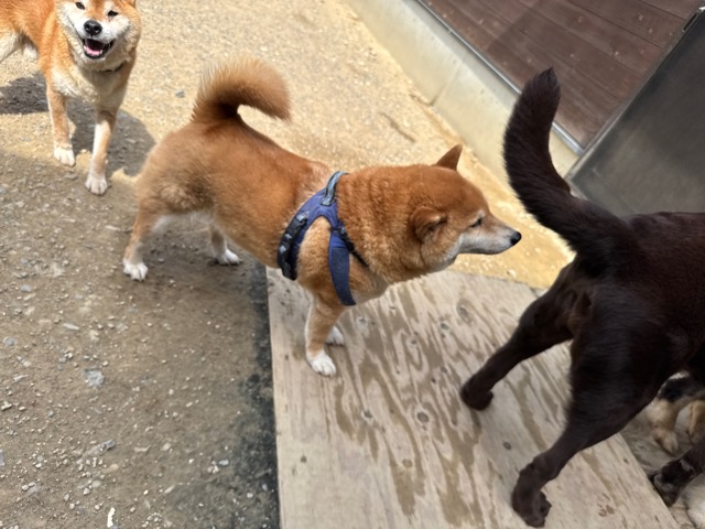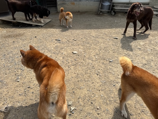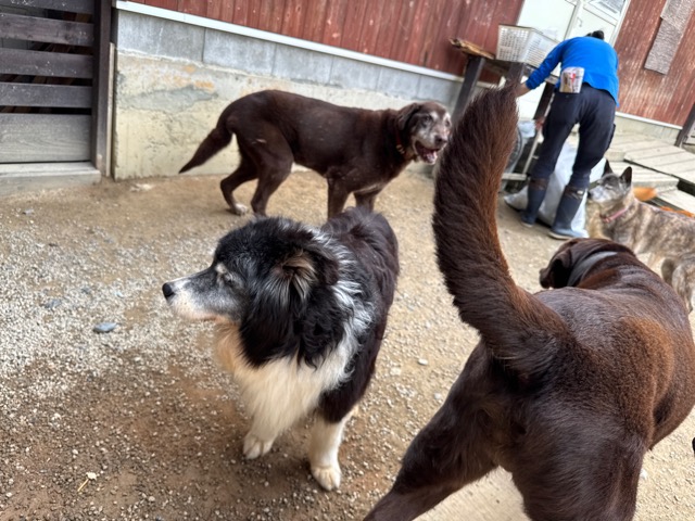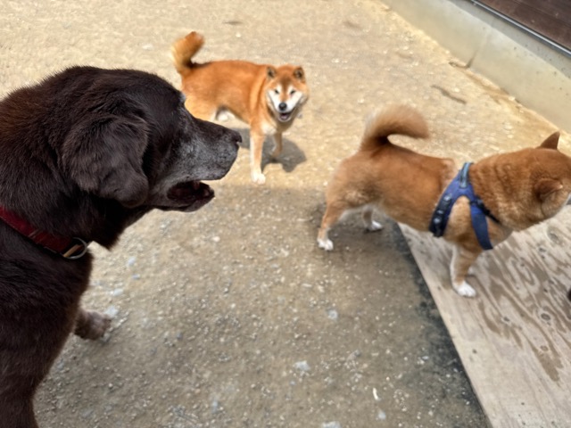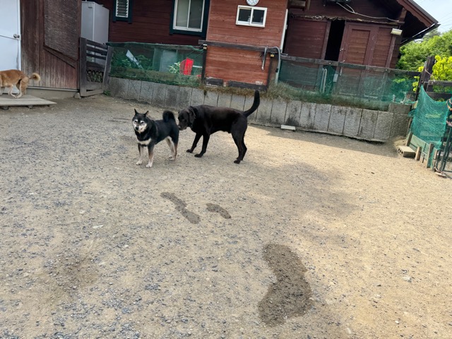 雨ですがお泊まりワンコに保育園ワンコも来てくれています^^