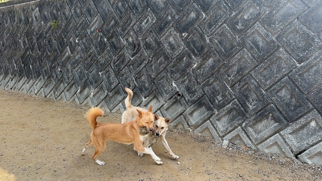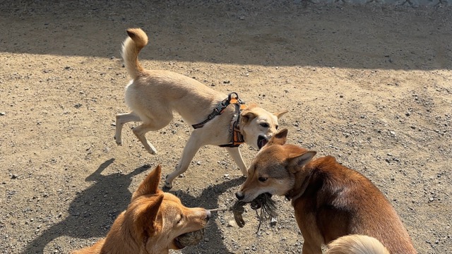 無理強いは厳禁、ワンコがマイペースで過ごせるように少し距離をとって。
