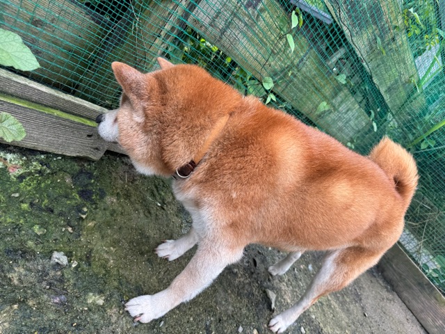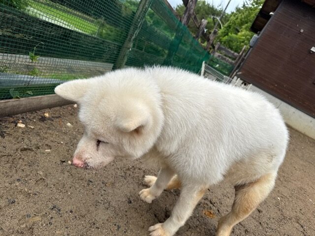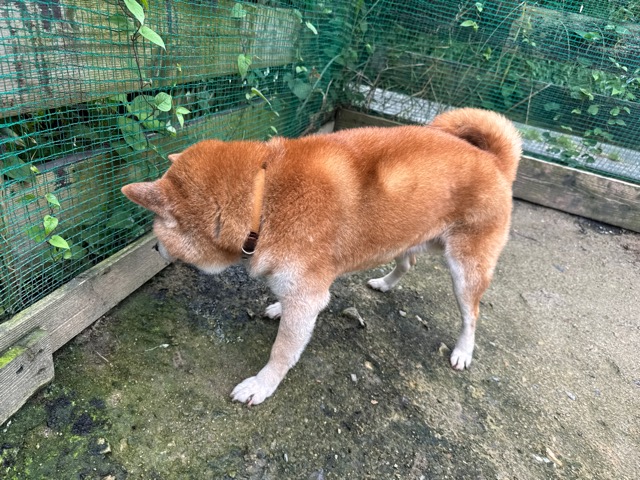 大型犬の あん、超小型犬の便の量くらいしか出せません、それでも あん は耐えてくれました。