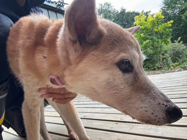 町内の方から電話、飼っている豆柴が逸走したと。
