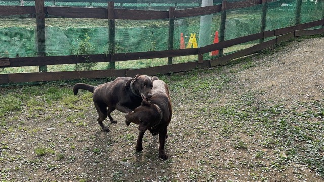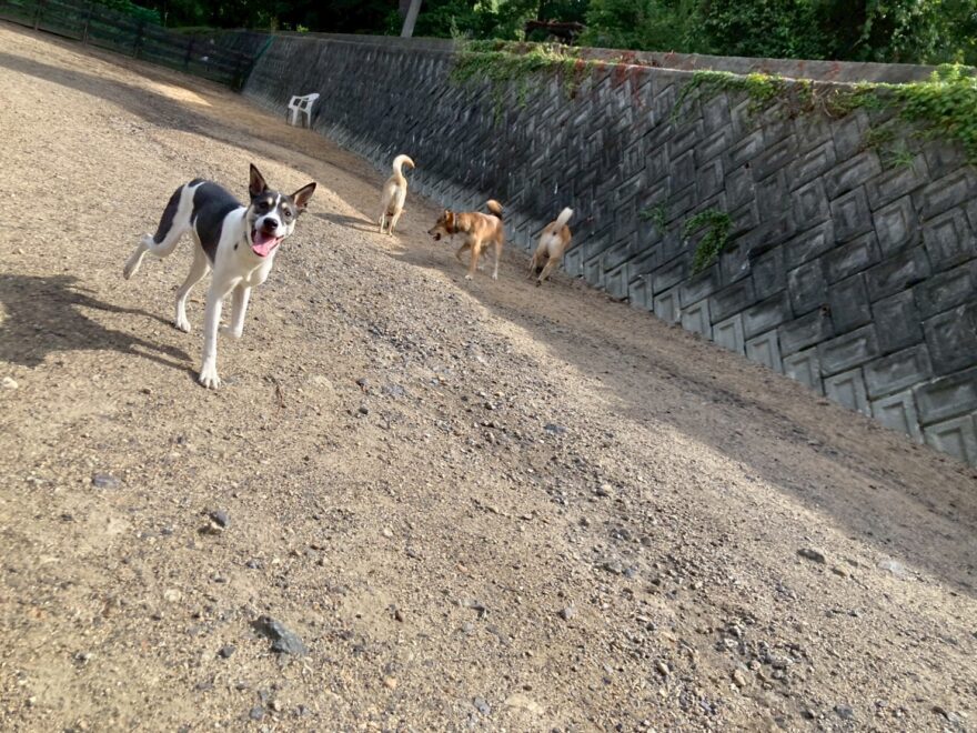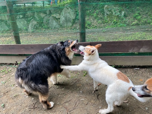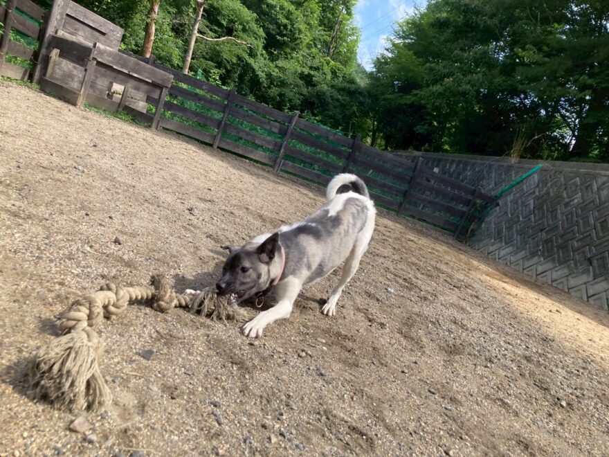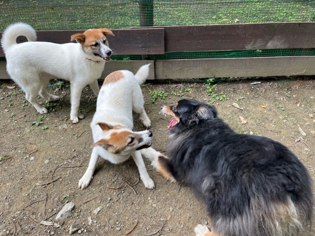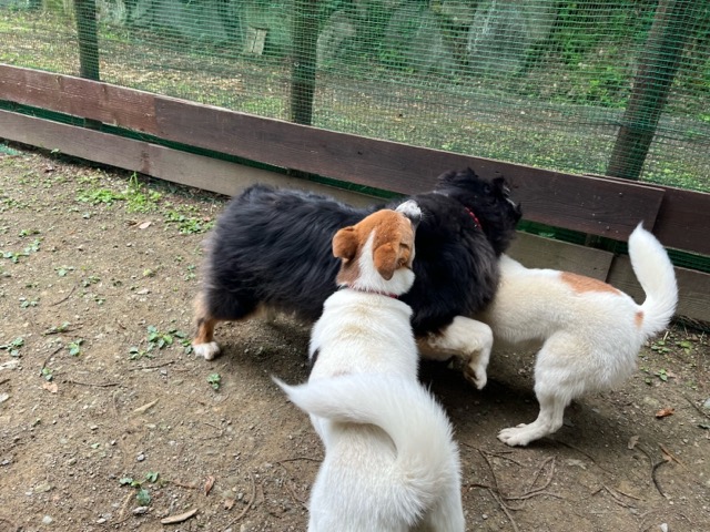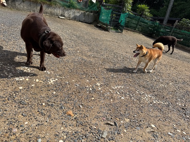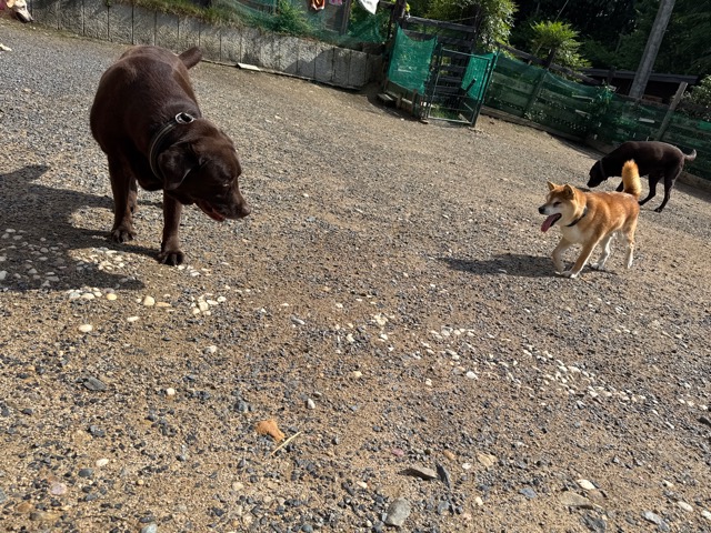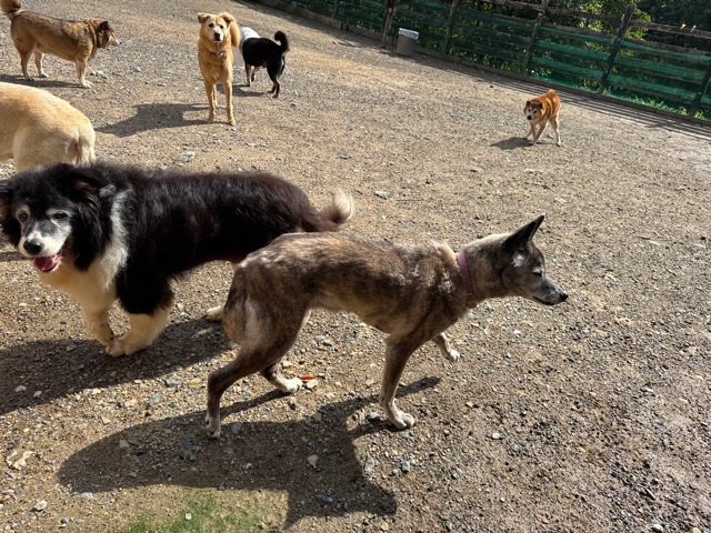 日中に遊ぶには危険な暑さです、ドッグランの御予約の飼い主様にも伝えています。