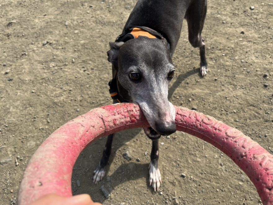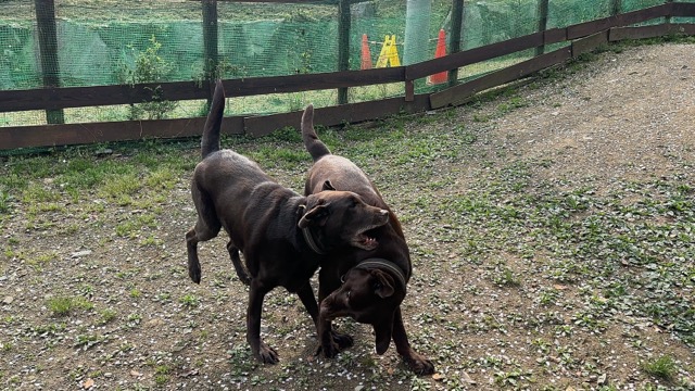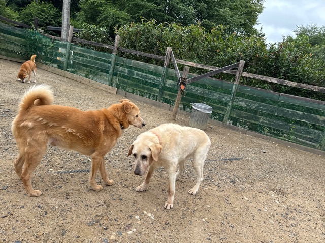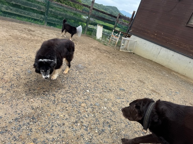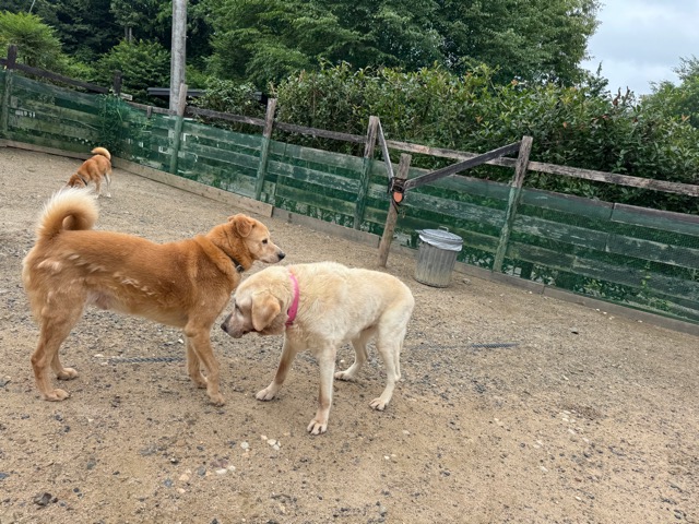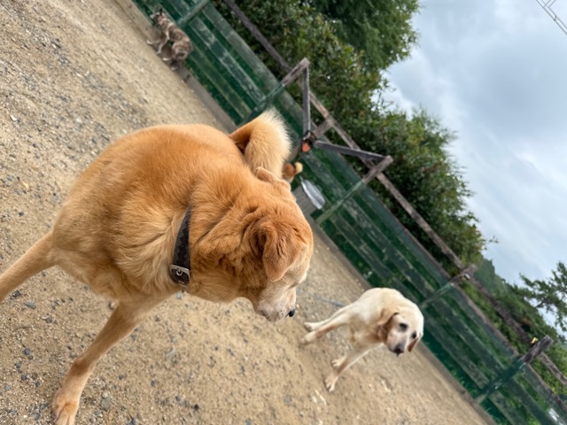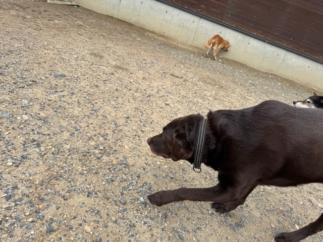 ドッグランを激しく走り回る彼らも 知らない人が見えただけでもうダメ、警戒モードに入ります。