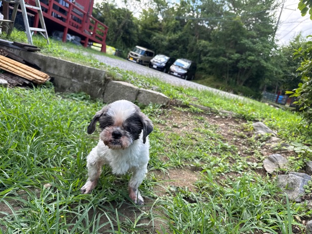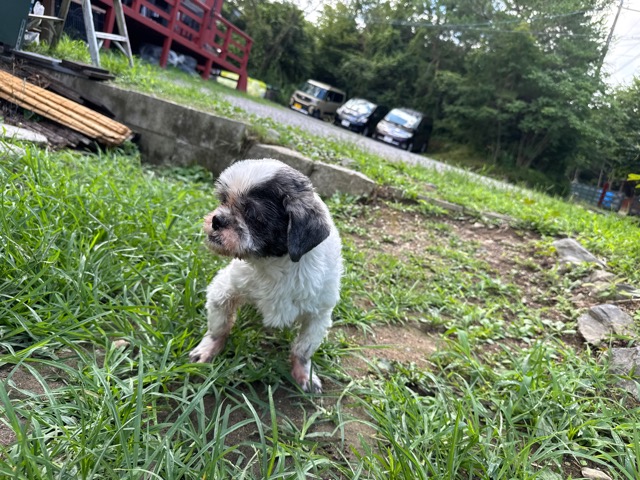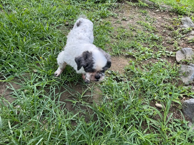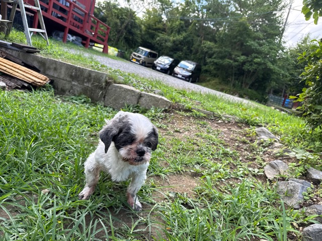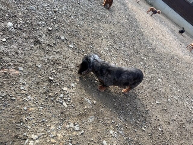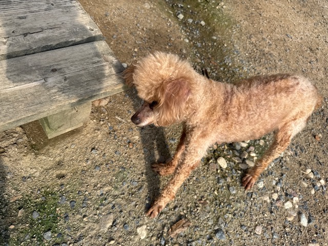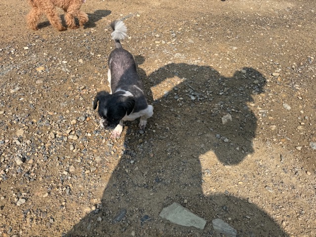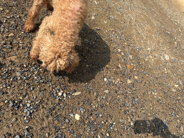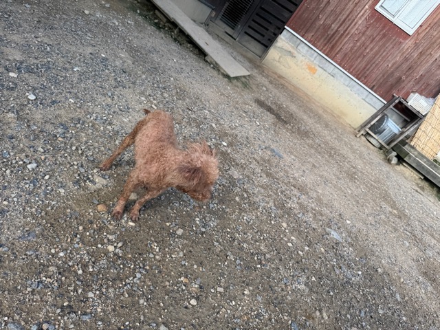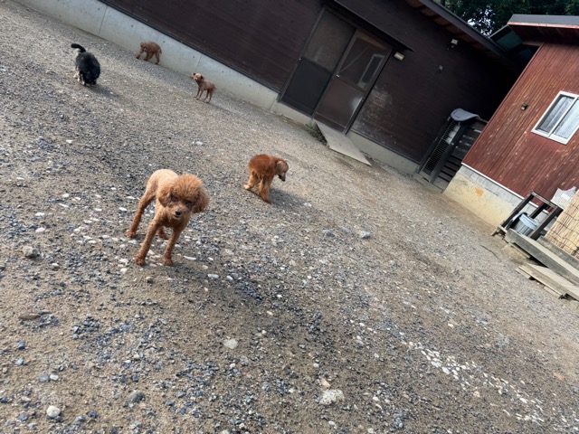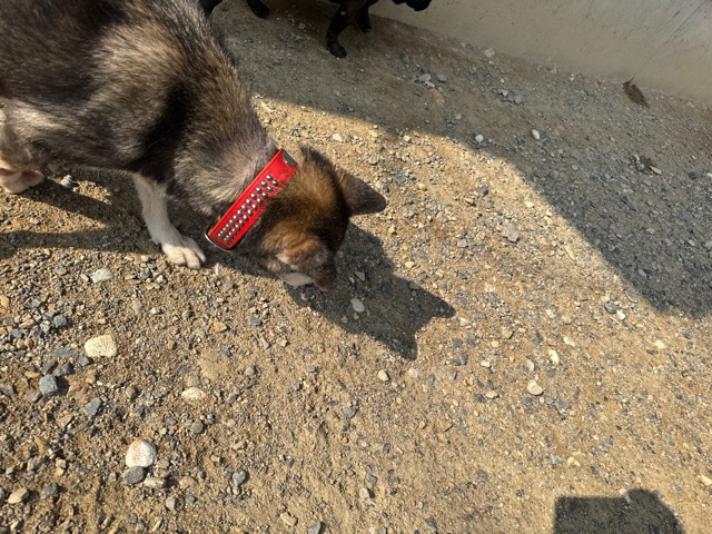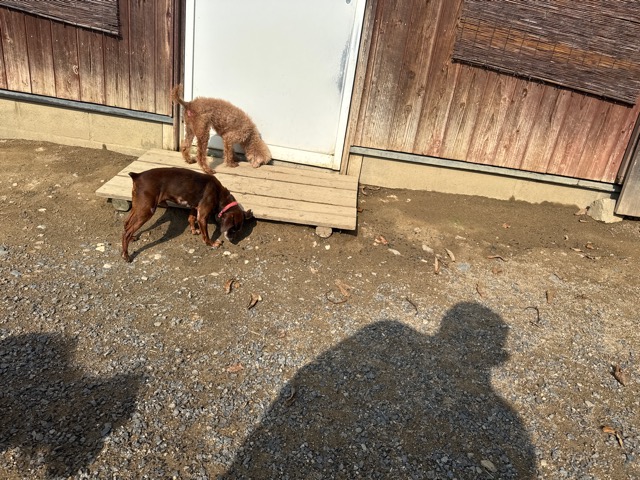 a dog and her puppies are standing on the road 老犬ホームあん|総合ケアハウスの日常