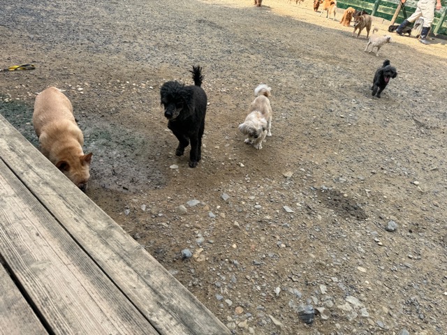 クマも気づかず、一緒に居たワンコも気づかず、おかげでそっと逃げれました^^