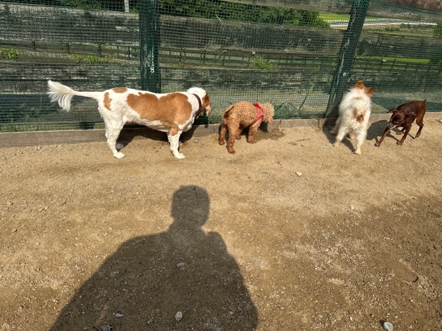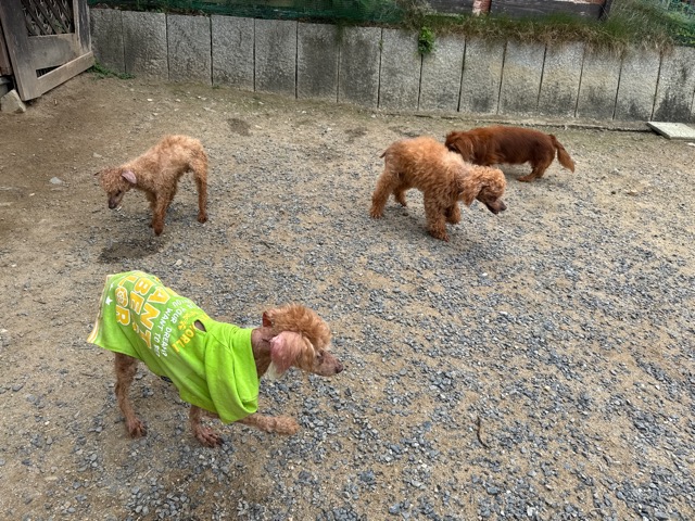 ワンコの散歩、暑さ対策をされて皆さん頑張られています。