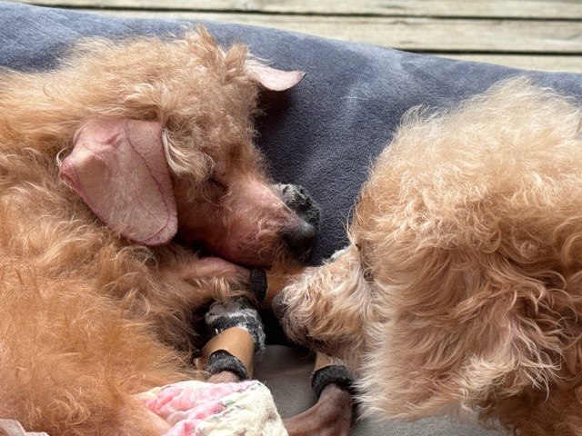 puppy dogs sitting and lying down 老犬ホームあん|総合ケアハウスの日常