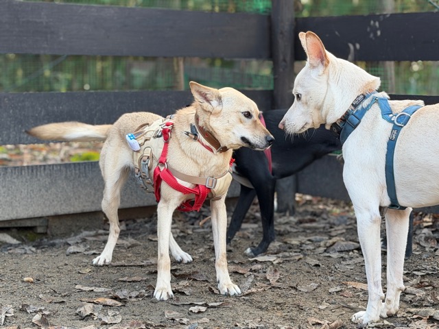 無理をさせないように経験を積んでいくことも大事、飼い主同士が知り合いであれば犬同士初対面でもうまくいくことが多いです。