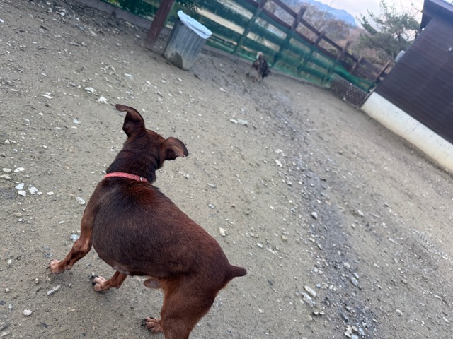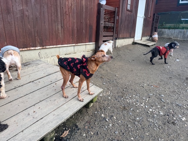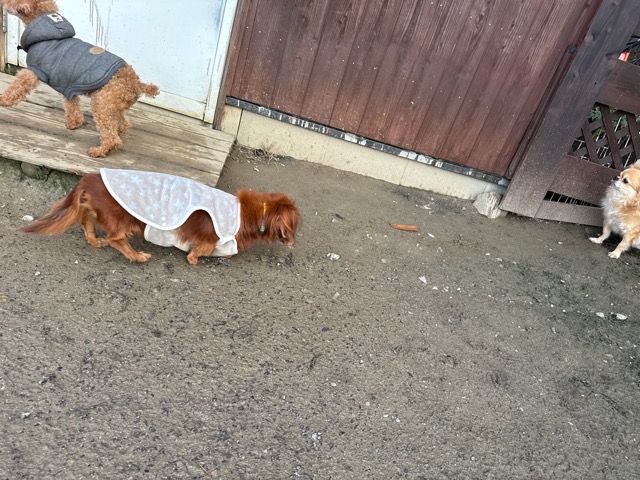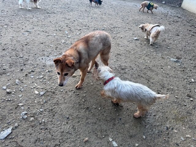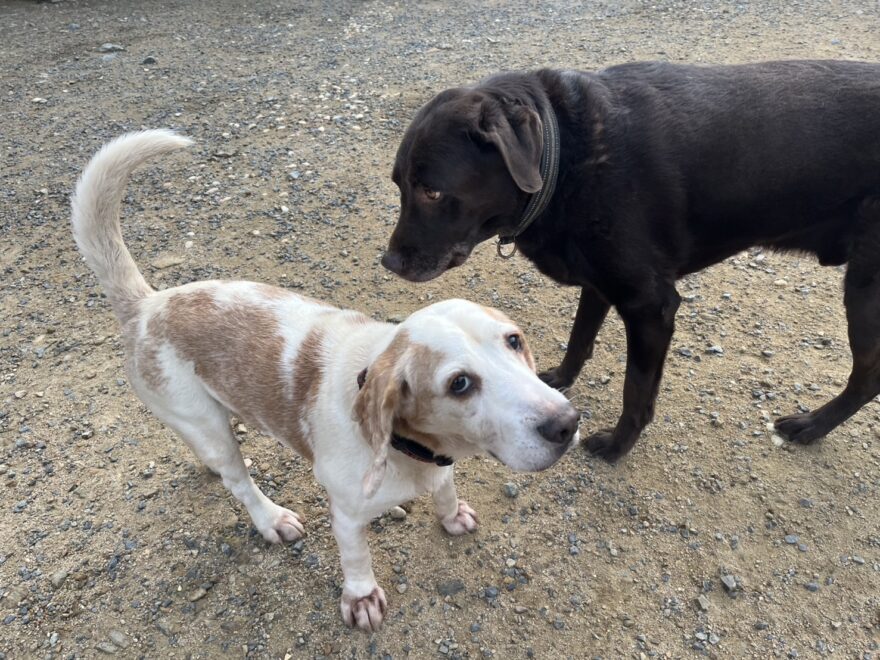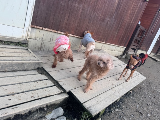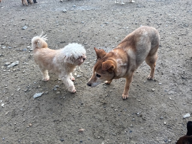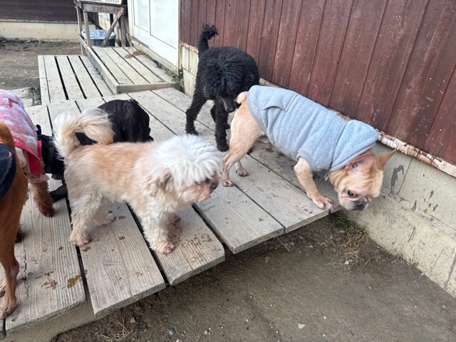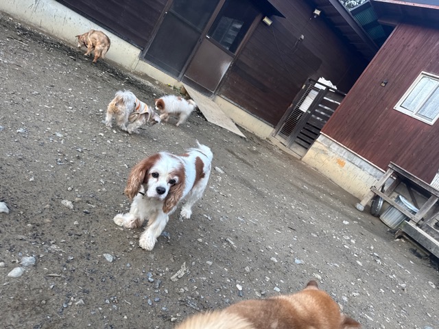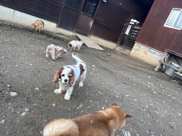 はじめは緊張気味でしたが徐々に元保護犬ちゃんたちと遊び始めました。
