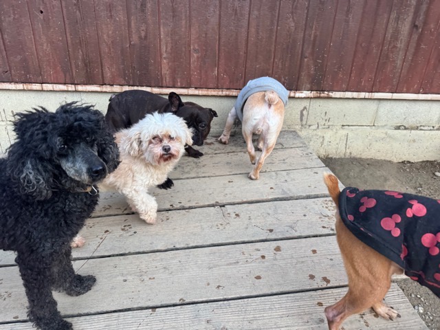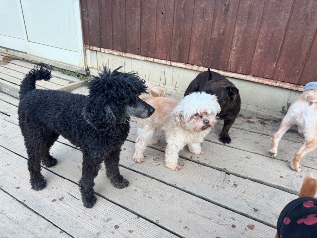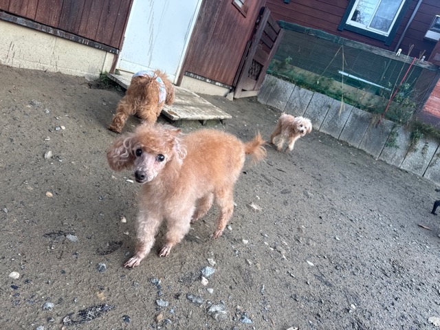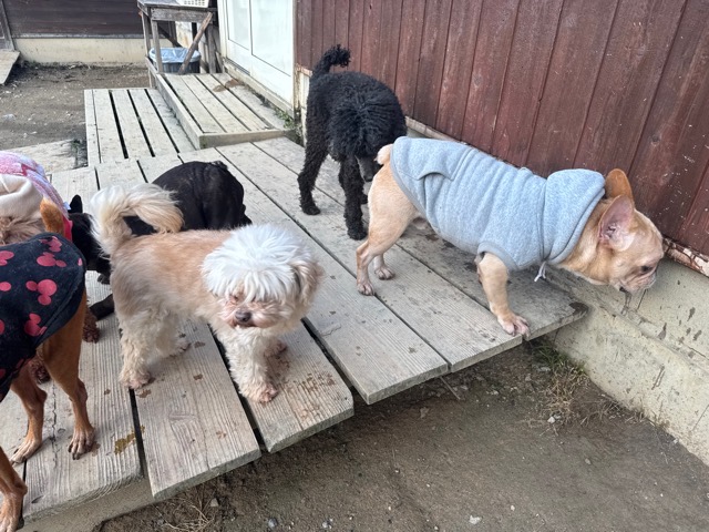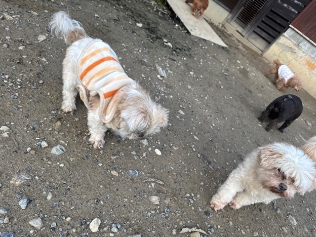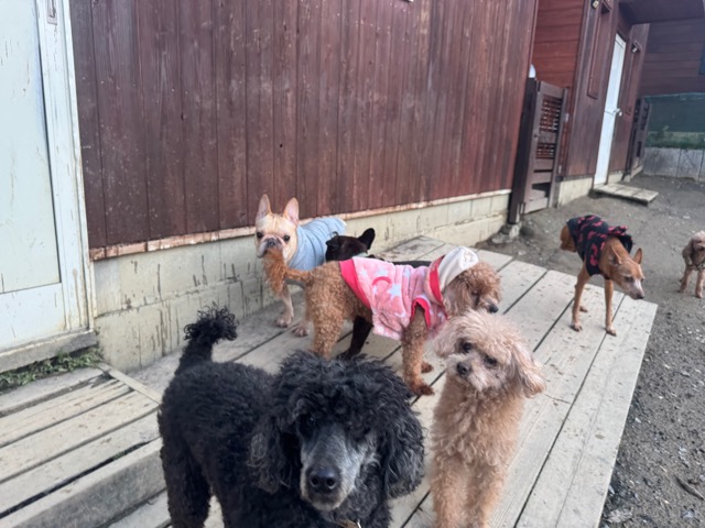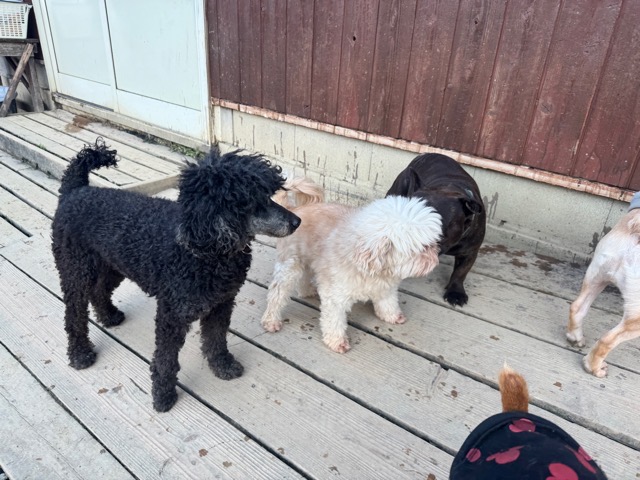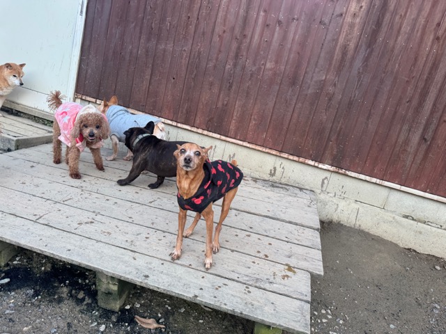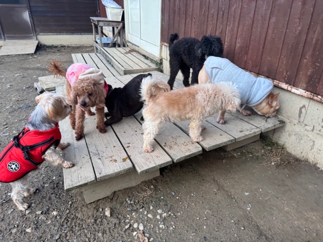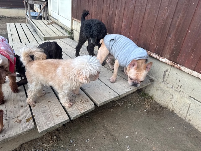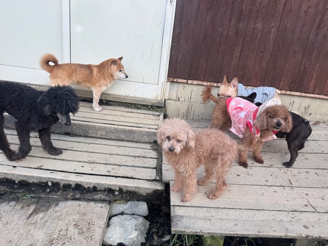 皆 あんから巣立った元保護犬ちゃん達、先輩後輩でみんな仲良くほほえましい姿。
