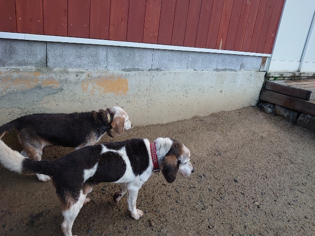 今朝から来てくれたワンコ、横にはベテランのユキが寝ています。